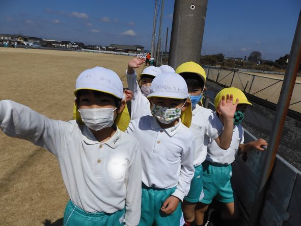 柊バスに気づいて手を振って下る皆様にも