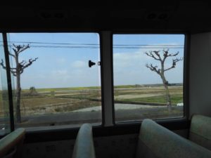 車窓から見える桜や 桃や 菜の花・・・に