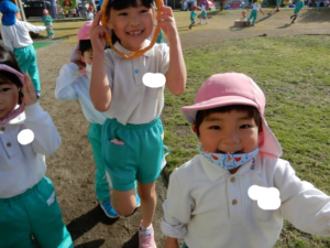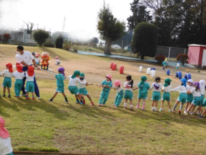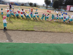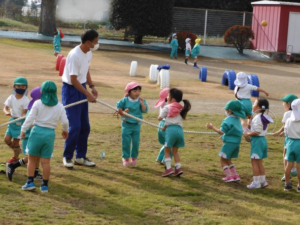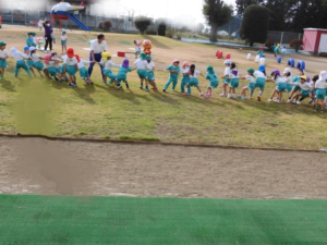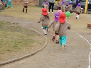 白く長~い綱が園庭中央に現れると