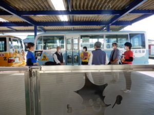 ドライバーさんと添乗職員の朝礼。