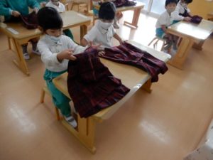 制服をたたむのも素早い!