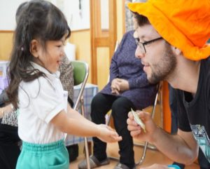 おじいちゃま・おばあちゃまと一緒に ふれあい遊びや英会話を楽しんでいただきました♪