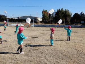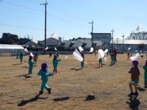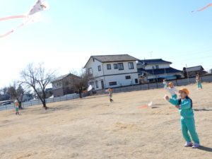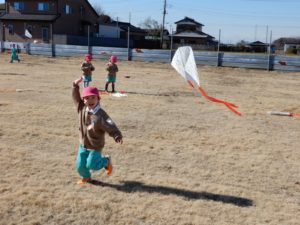 幼稚園の芝生で 『凧揚げ』をしましたヨ(*^▽^*)