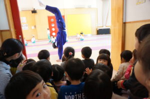 ちょうど体操の指導中でしたが、合間に『逆立ち歩き』 を見せてくれました♪